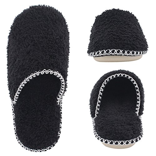 HomeTop Women’s Cozy Plush Fleece Slip On Memory Foam House Slippers (Small / 5-6 B(M) US, Black)