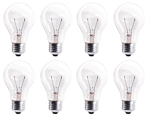 Pack Of 8 60A19/CL 560 Lumens 60 Watt Standard Household A19 E26 (Medium) Base Crystal Clear Incandescent Rough Service Light Bulb