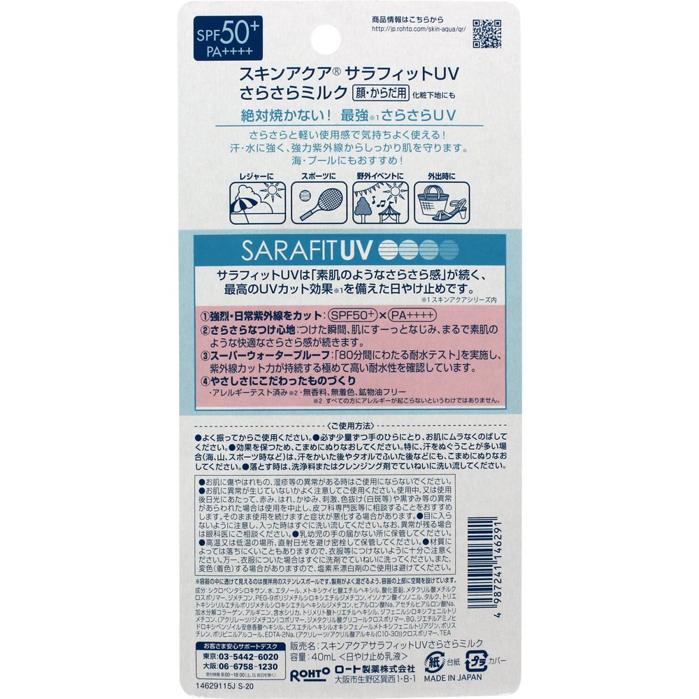 Skin Aqua Sara fit UV silky milk (SPF50 + PA ++++) 40mL
