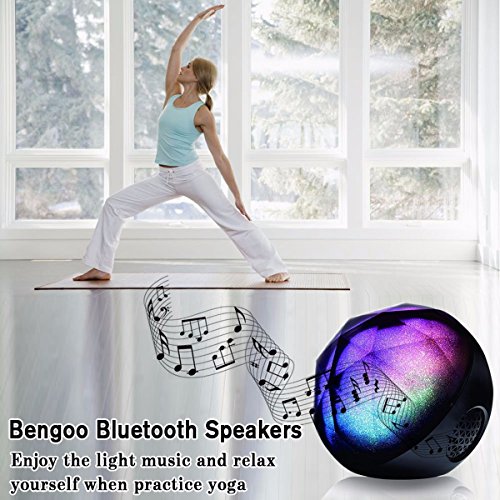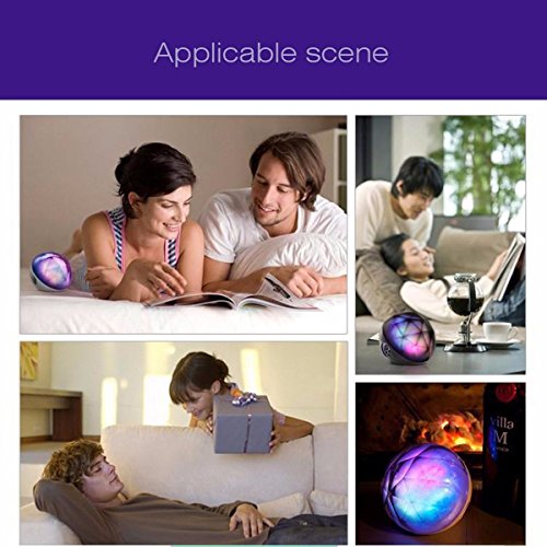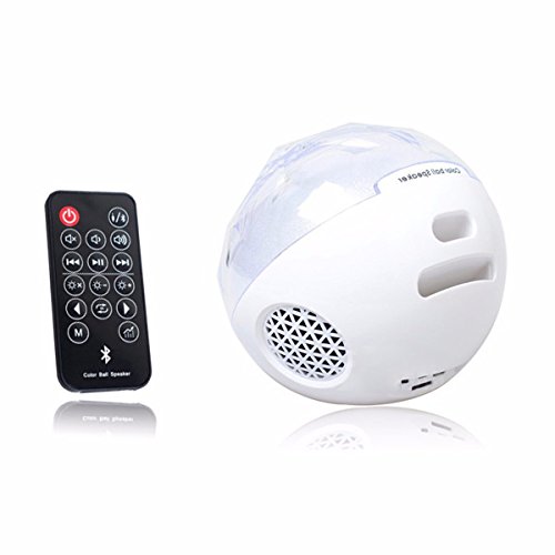 Feature : Remote controls the power on/off, light settings, volume settings, mode swapping. The remote fits in its own little slot in the back of the speaker, so it will not get lost easily / Color Ball LED Bluetooth Speaker combines outstanding sounding speaker with a built-in light show. It's gorgeous because the rainbow colors sparkle like shimmering frost or glitter from inside the speaker / The LED can produce 16 million color combination, You could choose from a single solid color, to rainbow, to a choice of three different tempo lights to match the beat of the music / Comes with the remote controller, When you Control it, it will flash different beautiful and delicate colors lighting dark rooms or space, Enjoy the music as you wish / You can listen music indoor or outdoor from your device in bluetooth pairing mode or wire connected mode