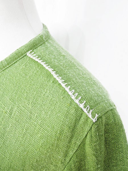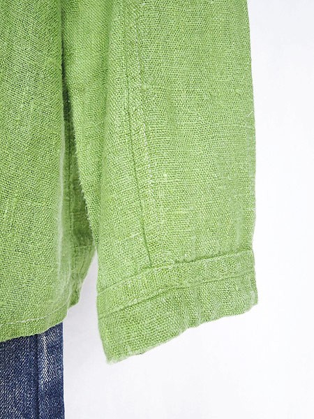 Ladies ブランド- カラー黄緑 メール便不可 コンディション★★★ 素材リネン 表記サイズ8P スタッフコメント素材の表面全体にネップあり、リネン素材の自然な素朴な味としてご理解いただけましたらと思います。右袖口にホツレダメージあり。 実寸サイズ 着丈 67 cm 身幅 52 cm 肩幅 39 cm 袖丈 56 cm ※ウエスト・ヒップ以外は平置き採寸