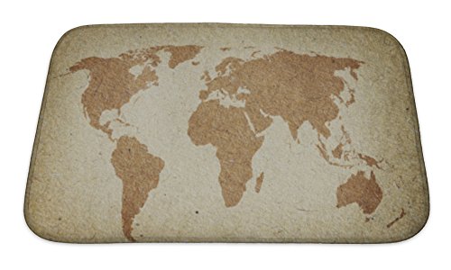Gear New No Slip Microfiber Memory Foam Vintage World Map Bath Rug Mat, 24" X 17"