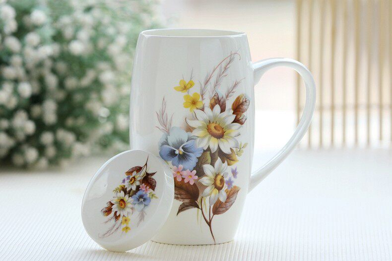 杯子陶瓷大容量创意马克杯骨瓷杯子带盖情侣水杯陶瓷杯牛奶咖啡杯