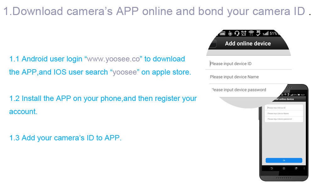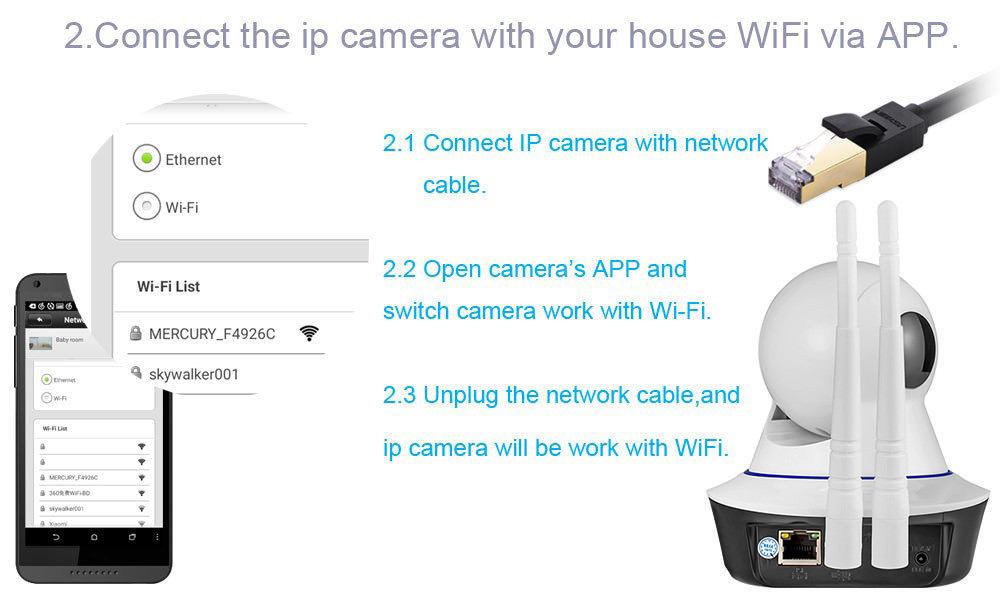 Plug in your wireless wifi camera, download the free mobile app, add camera by scanning the QR-Code and connect to your Wi-Fi, you're ready to begin live streaming.