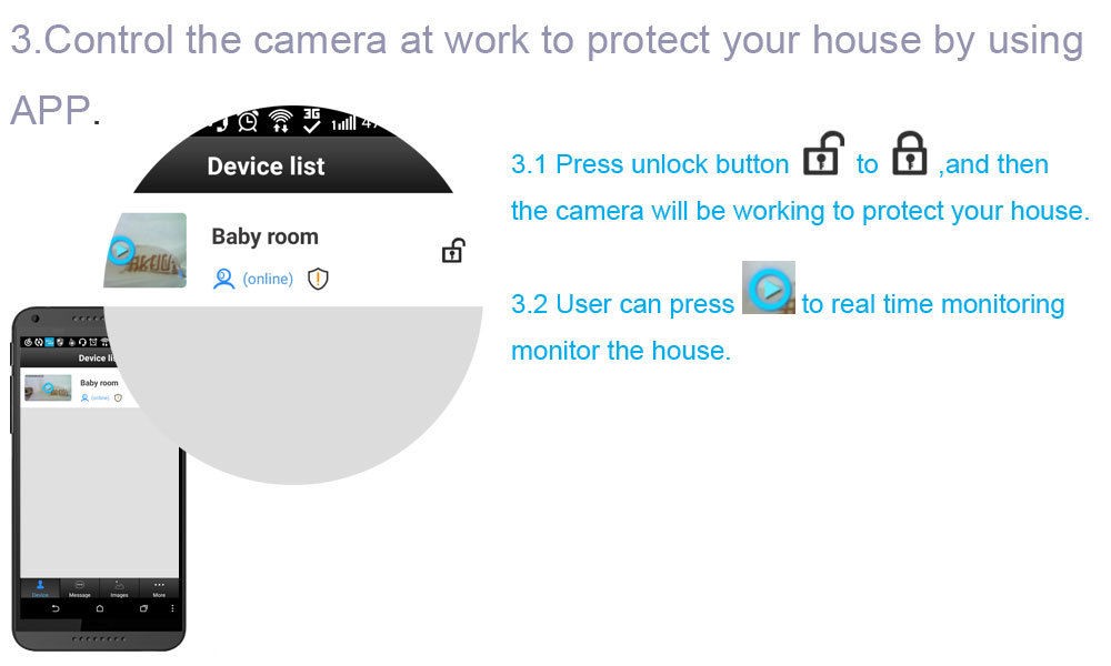 Remotely control the wireless wifi camera to pan and tilt by either drag the image left and right, up and down or simply tap the PT control on the app.