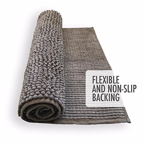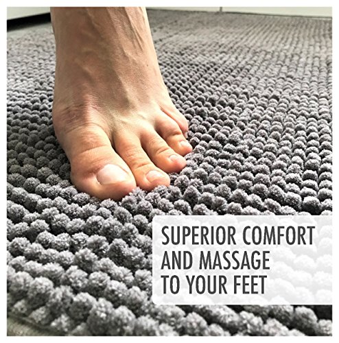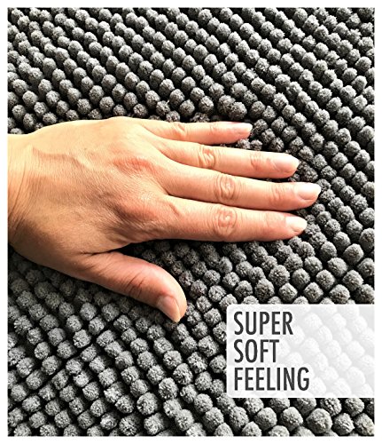 Kato’s Luxury Washable BATHROOM RUG - 20 x 32 inch -Gray Super Thick Shaggy Fast Dry Bath Mat
