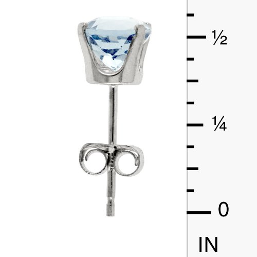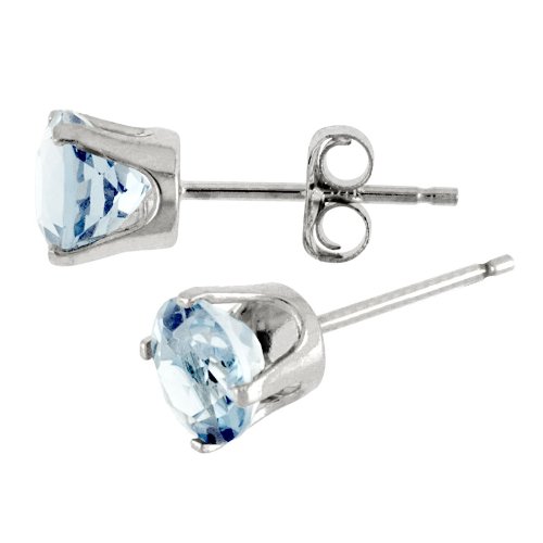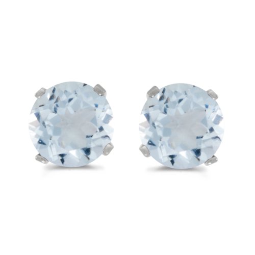 -. Title : 5 mm Natural Round Natural Aquamarine Stud Earrings Set in 14k White Gold