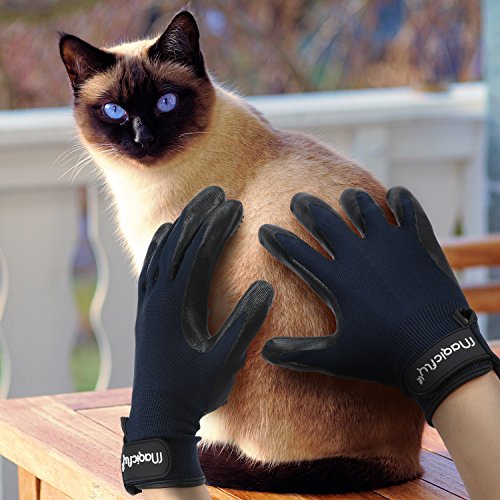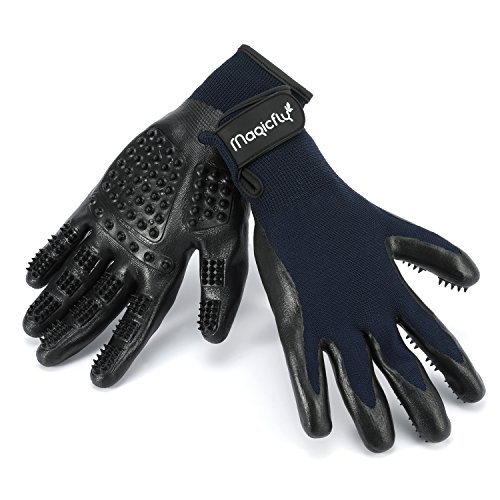 Studio : Magicfly Publisher : Magicfly Binding : Misc. Product Description Magicfly Pet Deshedding Glove Hair Remover Tool, Gentle Pet Massager Brush with Enhanced Five Finger Design, Perfect Pet Products for Dog Cat with Long Short Fur BENEFIT FEATURES OF MAGICFLY PET GROOMING GLOVE, Enjoy the hair removal with our multifunctional pet grooming gloves Enhanced Five Finger Gloves Design - Gently clean sensitive hard-to-reach places, like face, tail or legs 1.Adjustable Wrist Strap for a comfortable fit.(medium and large size for choosing) 2.Lightweight and breathable design, comfort not just for your pets, but also you. 3.Use them wet or dry - Palm coating will help to keep your hands and fingernails clean. 4.Machine Washable (Easy to Clean) 5.Scrubbing nubs provide relaxing massage for your pets. Gentle Hair Remover, Regular brushing removes loose hair and mats from your pet's coat. 6.Perfect for your lovely dogs, cats, horse or other pets. Package Includes: Pet Deshedding Glove x 2 (1 left-hand and 1 right-hand)
