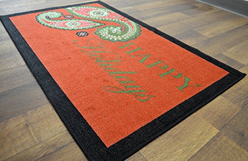 Christmas Doormat Non Slip Rectangular 24" X39" Xmas Happy Holiday Paisley Design Mat Rug