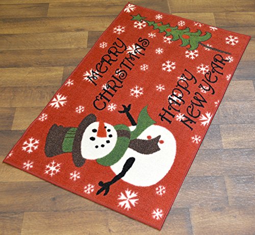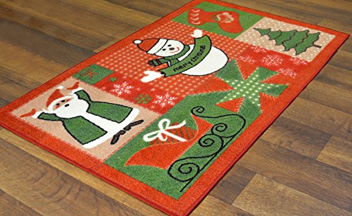 Christmas Doormat Non Slip Rectangular 24" X39" Xmas Snow Men and Santa Design Bathroom Rugs Mat Rug