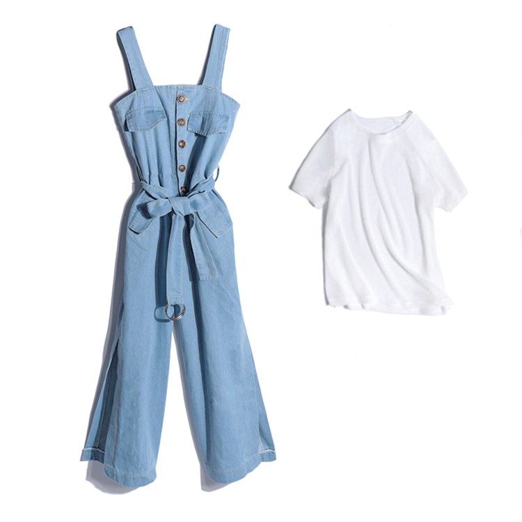 【製品仕様】■商品名春夏素材 デニム風オールインワン オールインワン レディース サロペット 2点セット デニム風 夏 春 パンツ アウトドア カジュアル デート ママ服 スリット 公園着 ピクニック 遠足 S M L XL LL ■商品説明使い勝手の良い白Tシャツとの2点セット。涼しげなデニム風生地だからアウトドアデートや元気ママの公園着に。■サイズ/寸法S M L XL■素材/材質コットン