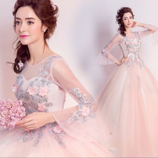 ふわっとひろがるスカートが華やかなロングドレスです。