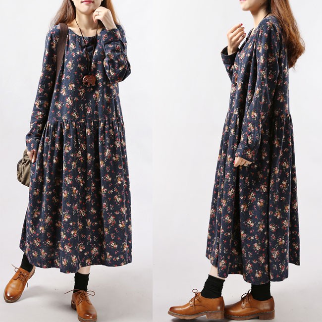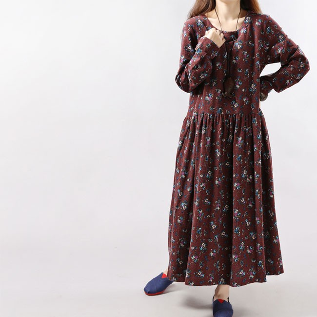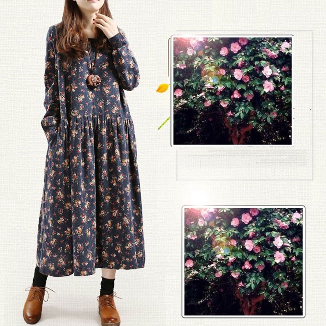 | 商品名 | 秋のファッション 花柄ワンピース ロングワンピース フレアワンピース 長袖 綿麻 ルーズワンピース ナチュラル フラワー 森ガール 大きいサイズ |