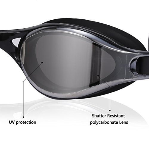MULTIPLE EFFICACIES: SHATTER PROOF-Polycarbonate lenses stay strong even in the toughest conditions. UV protection and Anti-Fog coating enhances your swimming experience.