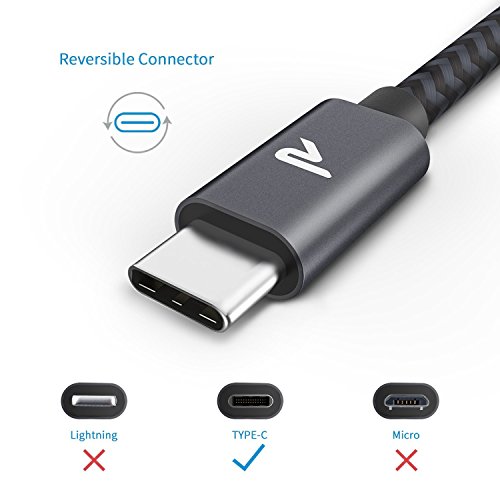 USB C Cable RAMPOW Type C to USB 3.0 Braided Charging Cable [3.3ft/Space Grey] - for LG G5/V20, Nexus 5X/6P, Samsung Galaxy S8, Moto Z, Nintendo Switch and other Devices
