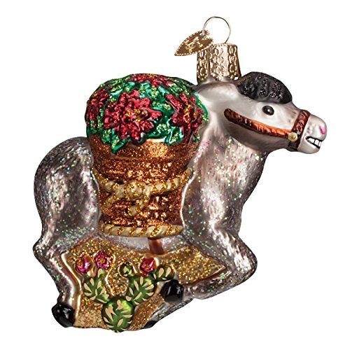 Old World Christmas Pedro Donkey with Flowers of Holy Night Glass Blown Ornament