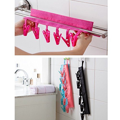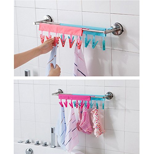 Lesirit Portable Bathroom Cloth Hanger Rack Clothespin Travel Folding Cloth Hanger Clips Pack of 3 (B)