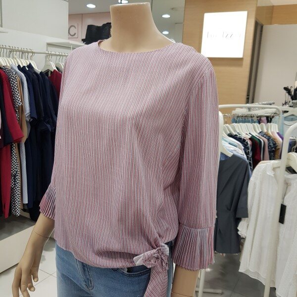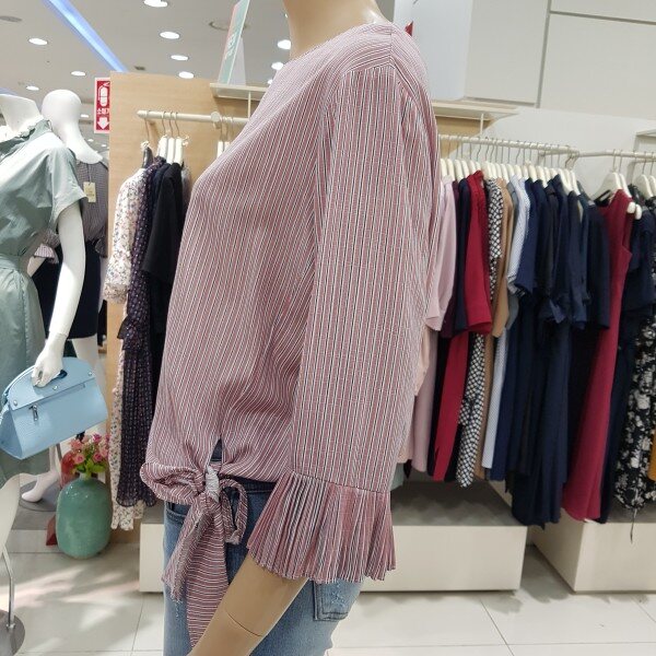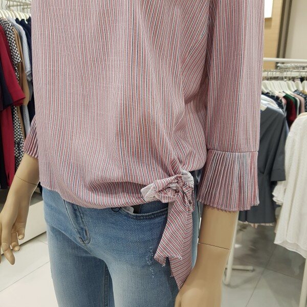 플리츠 소매와 허리 리본 매듭 포인트로 모던한 세련미와 캐쥬얼함이 어우러진 착용감 좋은 면 혼방 블라우스입니다~