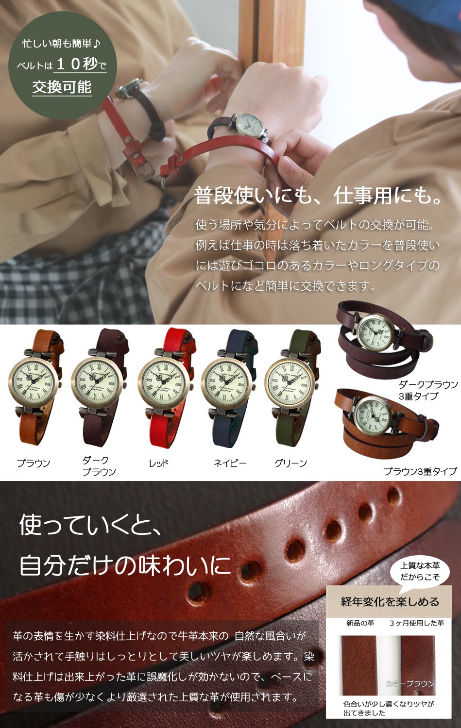 * The belt uses cowhide (Italian leather) and color adopts calm 5 colors
