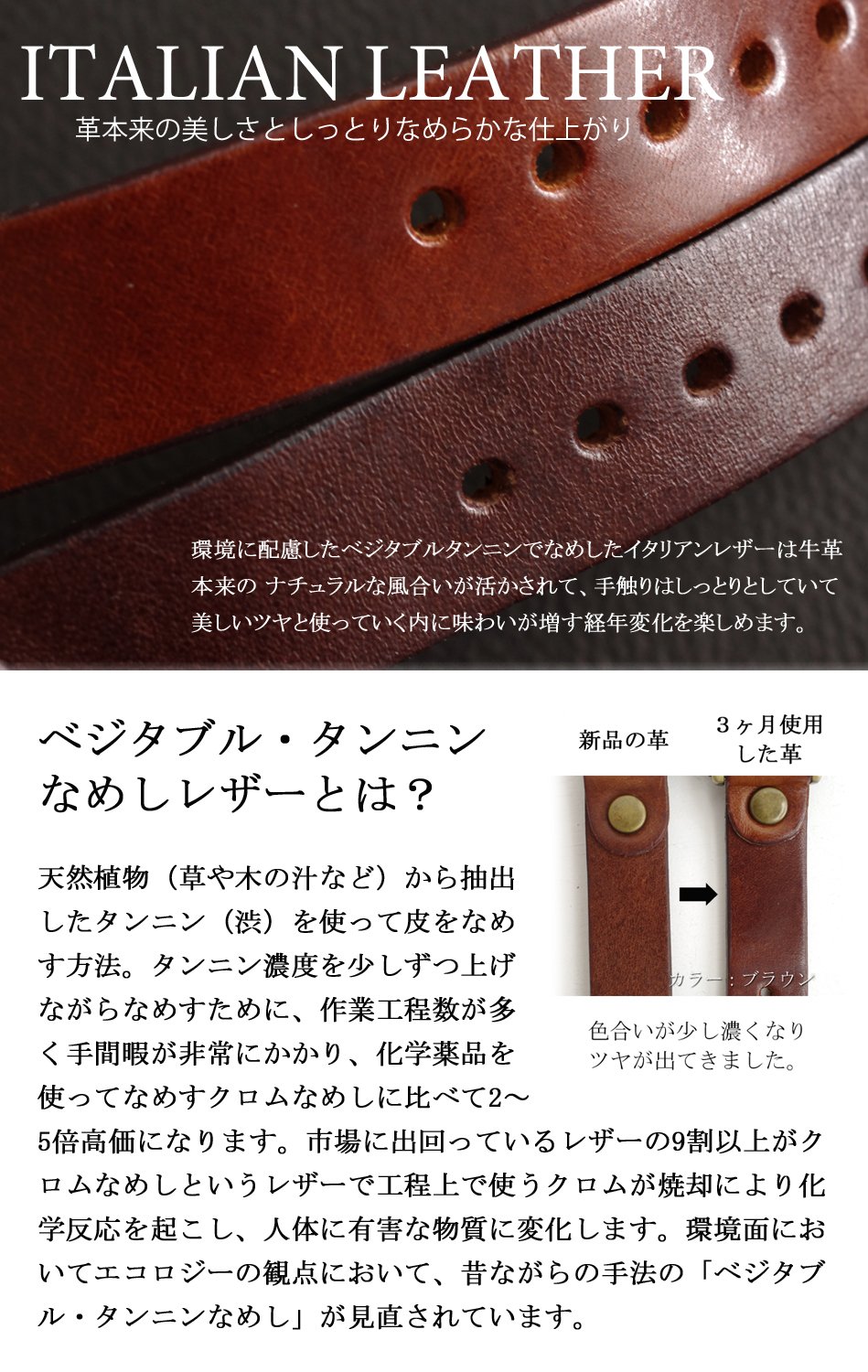 Because it is full vegetable tannin, you can enjoy leather aging.