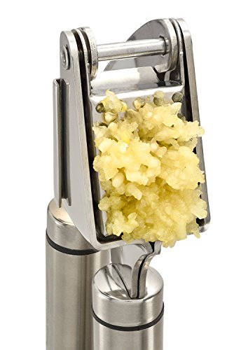 Title : Qlty First Stainless Steel Professional Garlic Press, Crusher Complete Bundle - Includes Silicone Peeler, Cleaning Brush and Garlic Recipe Ebook