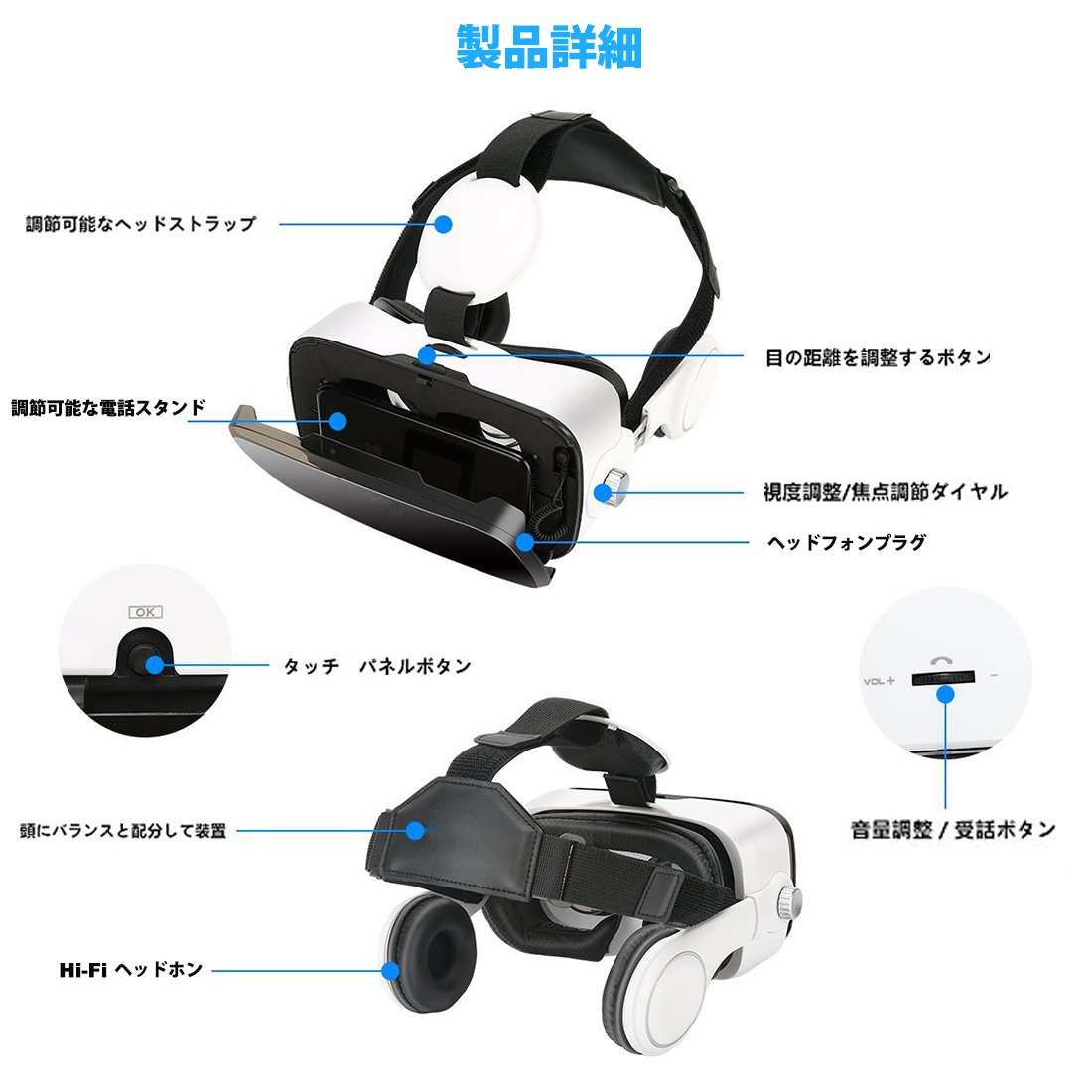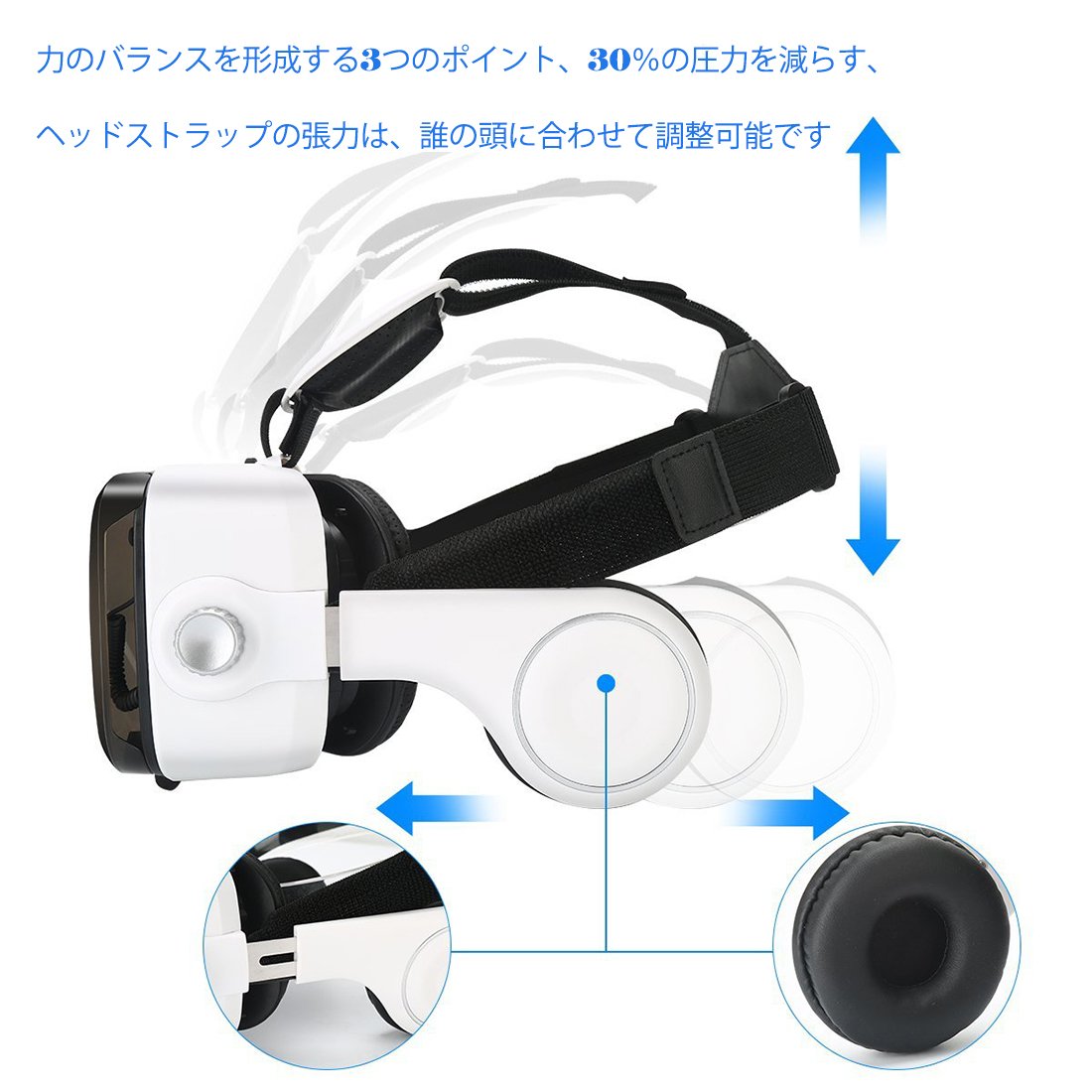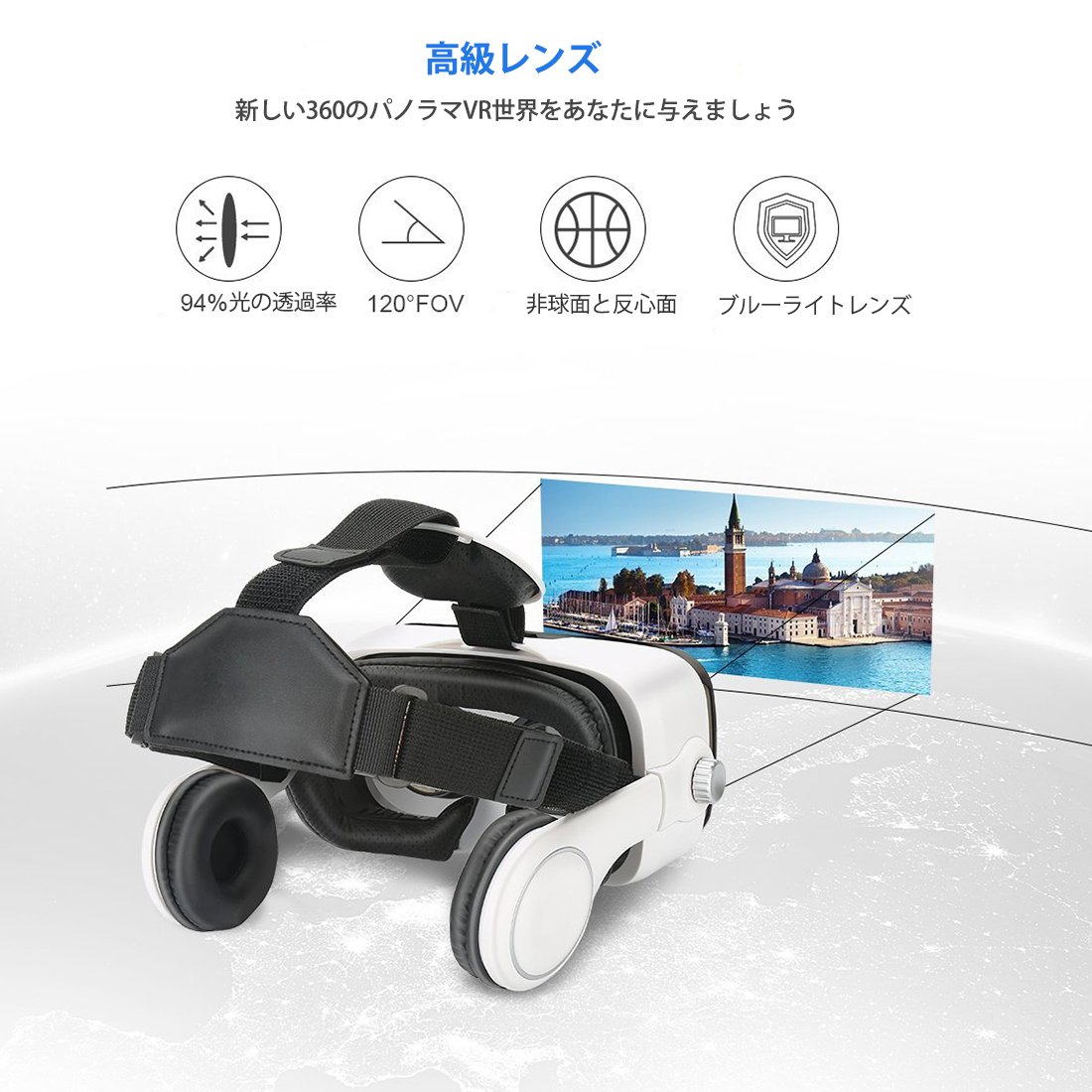 The VR main body adopts ear band with earphone, soft ear cushion installed, and we will shut out external noises by gently wrapping the ear.