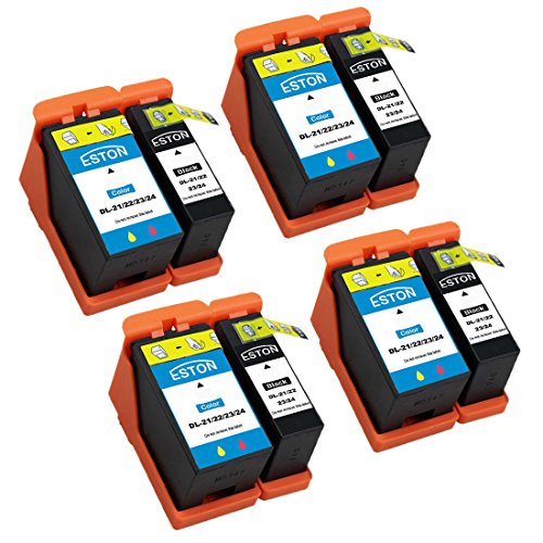 ESTON 8 Pack (4 Black & 4 Color) Compatible Hi-Yield Ink Cartridge for Dell Series 21 22 23 24 P513w P713w V313 V715w v515w