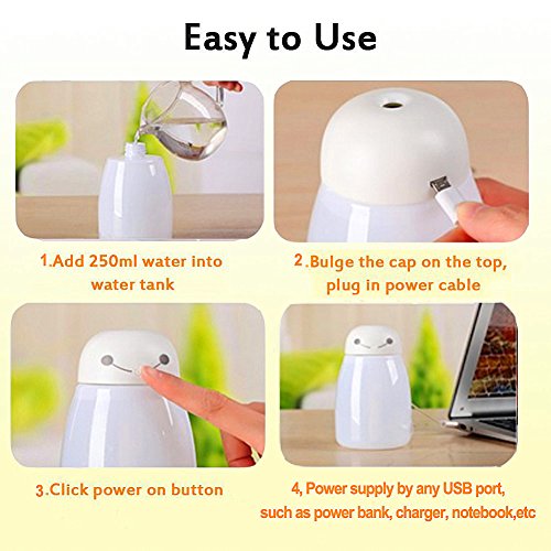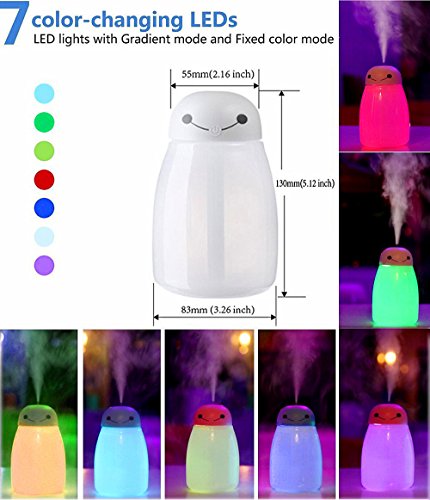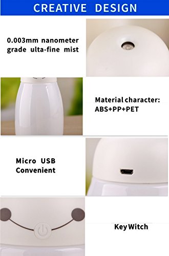 Humidifier Diffuser Mist 400ML Essential Oil Colorful LED Night Light Cute Air Purifier For Home,Bedroom, Office,Baby. (white)