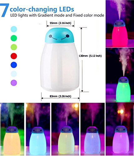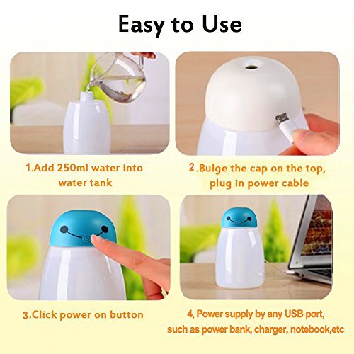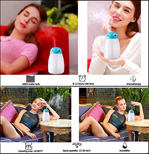 Humidifier Diffuser Mist 400ML Essential Oil Colorful LED Night Light Cute Air Purifier For Home,Bedroom, Office,Baby. (Blue)