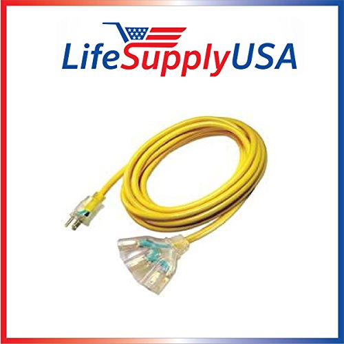 - Outdoor/Indoor Heavy Duty Extension Cord - 12/3,Yellow,PVC,SPT-2,5-15P,3 Outlets