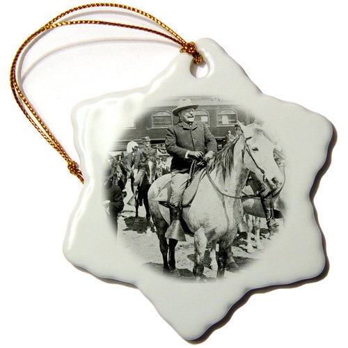 3dRose orn_97715_1 President Teddy Roosevelt on Horseback in Yellowstone National Park 1903 Snowflake Ornament, Porcelain, 3"