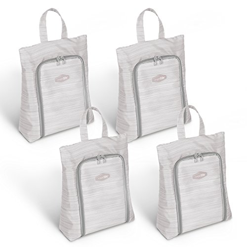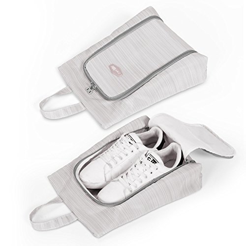 Features: Light as a feather, this zippered Shoe Sac is the simple solution Ultra lightweight silnylon ripstop allows for visibility of contents Quickgrab handle. Water-resistant and anti-staining properties.The design of middle zipper make it more convenient for organization. Large capacity:It holds two pairs of sandals or one pair of hiking boots.(according to different sizes of shoes)There are two sizes for your reference! Essentials for TRAVEL BUSINESS:Large capacity ,they can used for organizing your shoes to keep away from moisture,dust and bacteria.Making your travel easy and happy Clean Maintance: