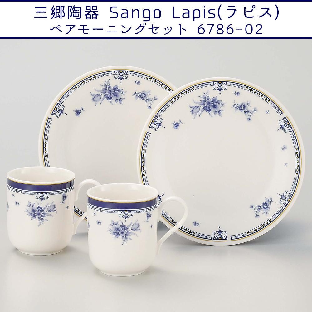 瑠璃色の模様が美しいベーシックなシリーズのペアモーニングセットです。