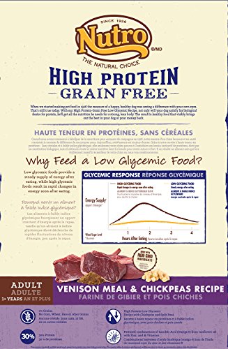• Nutro venison meal and chickpeas high protein grain-free recipe is made with real sources of protein