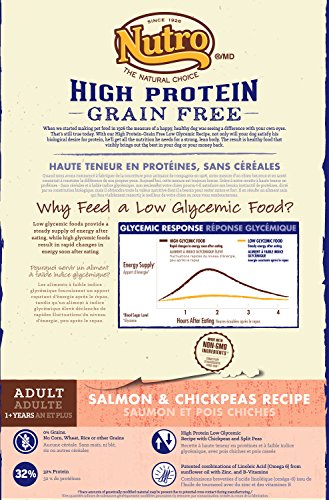 • Nutro salmon and chickpeas high protein grain-free recipe is made with real sources of protein