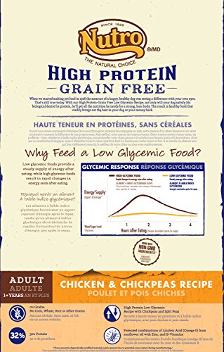 • Nutro chicken and chickpeas high protein grain-free recipe is a low glycemic recipe