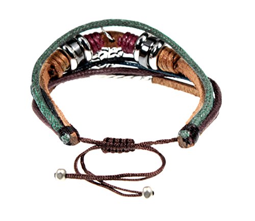 BSJ Studio Design Multi Strand Beaded Leather Bracelet With Adjustable Length Drawstring