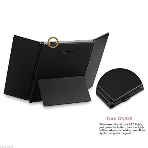 Inifty Trifold Mirror Makeup Two-Sided LED Light Travel Compact Vanity Mirror for Cosmetic Makeup
