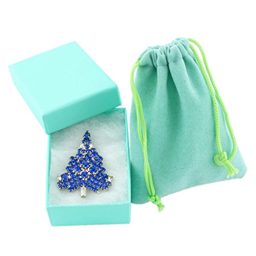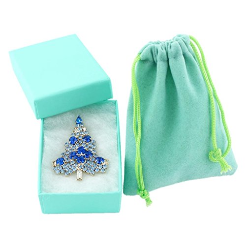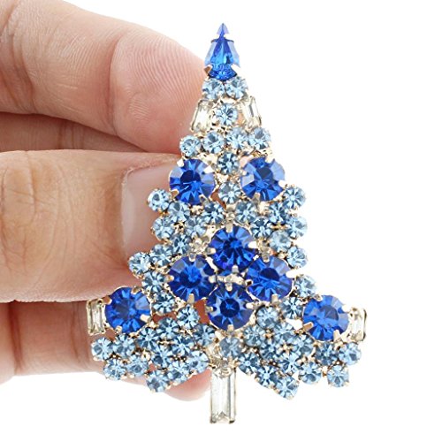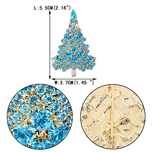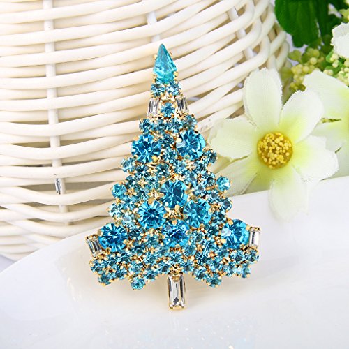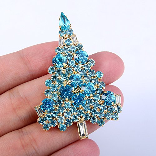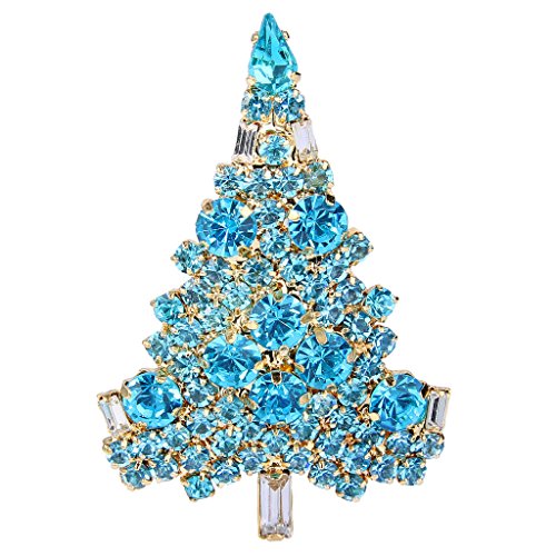 EVER FAITH Art Deco Christmas Tree Brooch Sky Blue Austrian Crystal Gold-Tone Holiday Gift