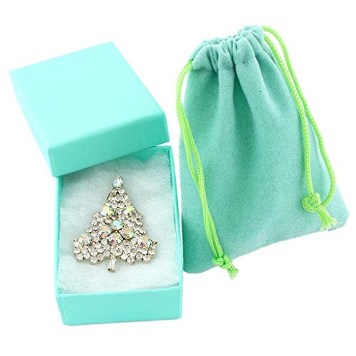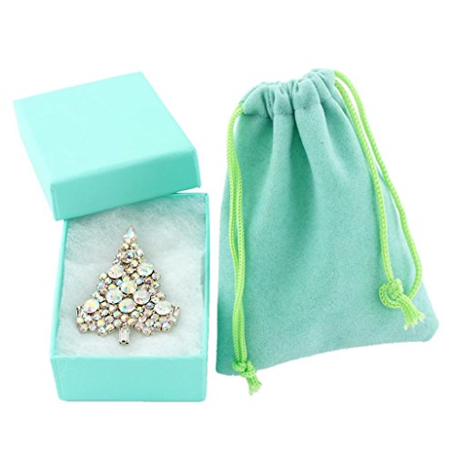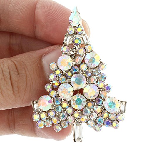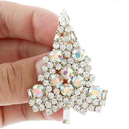 EVER FAITH Art Deco Christmas Tree Brooch Iridescent Clear AB Austrian Crystal Gold-Tone Holiday Gift