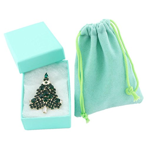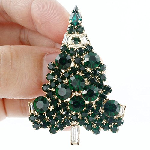 EVER FAITH Art Deco Christmas Tree Brooch Green Austrian Crystal Gold-Tone Holiday Gift