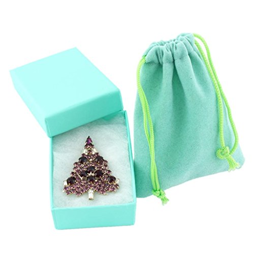 EVER FAITH Art Deco Christmas Tree Brooch Purple Austrian Crystal Gold-Tone Holiday Gift