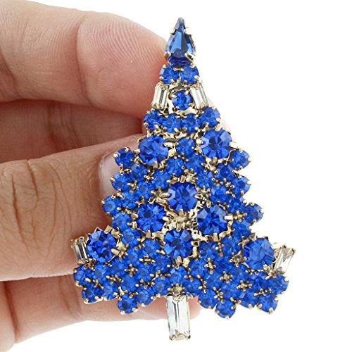 EVER FAITH Art Deco Christmas Tree Brooch Dark Blue Austrian Crystal Gold-Tone Holiday Gift