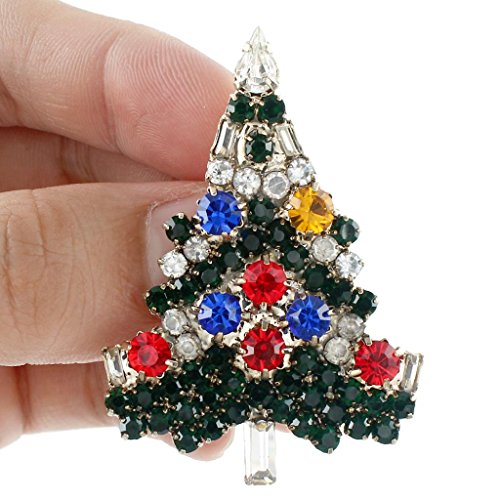 EVER FAITH Art Deco Christmas Tree Brooch Multicolor Austrian Crystal Gold-Tone Holiday Gift