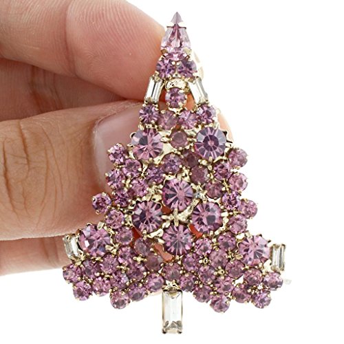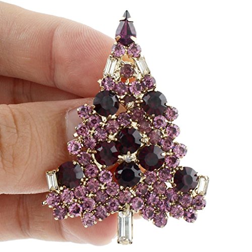 EVER FAITH Art Deco Christmas Tree Brooch Light Purple Austrian Crystal Gold-Tone Holiday Gift