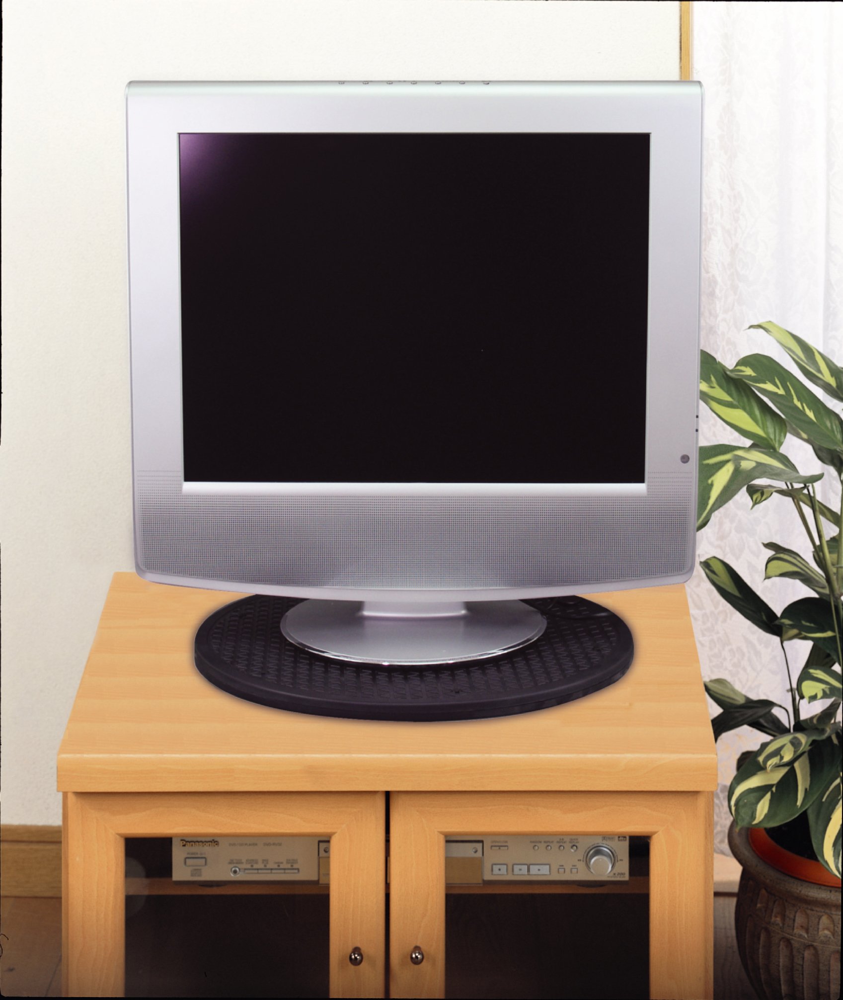 Rotating table for TV which can rotate the TV to the left and right easily with one finger.