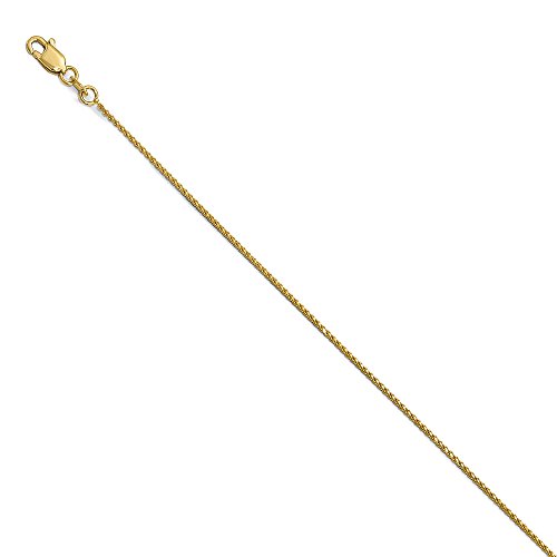Interwoven solid links of diamond-cut 14k yellow gold form a sparkling braided design that will add elegance and beauty to your ankle. This delicate 1mm width, 9-inch long, spiga chain anklet closes with a classic lobster-claw clasp.Feature