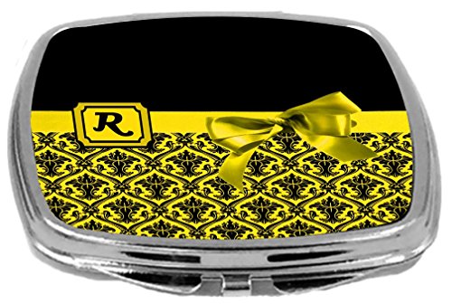 Rikki Knight Letter-R Monogram Damask Bow Design Compact Mirror, Yellow, 2 Ounce