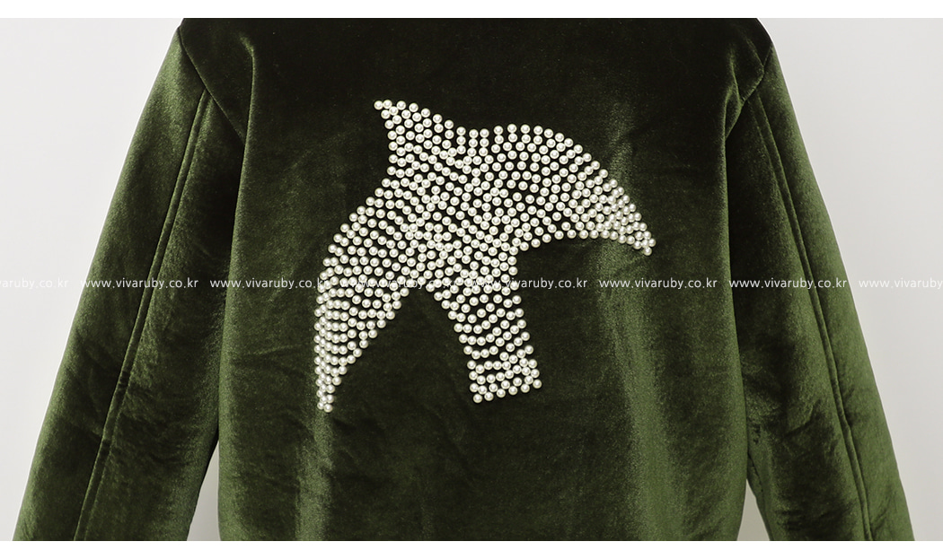 ボタンとバックラインに真珠、きめ細かさでラブリーしながら