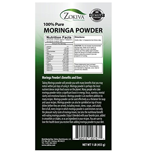 Boost your energy levels with our Moringa leaf Powder. This amazing nutrient-dense gift from nature has been used as a dietary supplement for thousands of years by different cultures across the globe. The Moringa "Miracle Tree" boasts an amazing 30% plant-based protein, 90+ all-natural vitamins and minerals, all 8 essential amino acids, 46 powerful antioxidants, omega's 3, 6 and 9, calcium, potassium, iron, zinc and Vitamins A, K and C. Moringa is possibly the most the most nutrient dense superfood discovered on earth. Start your day with Moringa and get the energy blast you need to get through the day.Feature